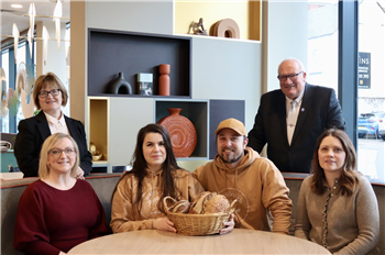 Pictured, left to right, are: (Top) Carol Ingleston, Nuneaton and Bedworth Borough Council and Cllr Rob Howard, Warwickshire County Council. (Bottom) Cathy Homer, Coventry and Warwickshire Chamber of Commerce, Siyana Yanarov and Alex Yanarov, Wild Breads Bakery and Rebecca Corr, Warwickshire County Council.